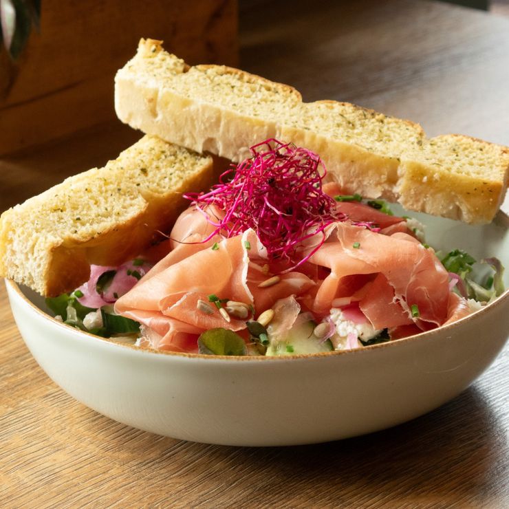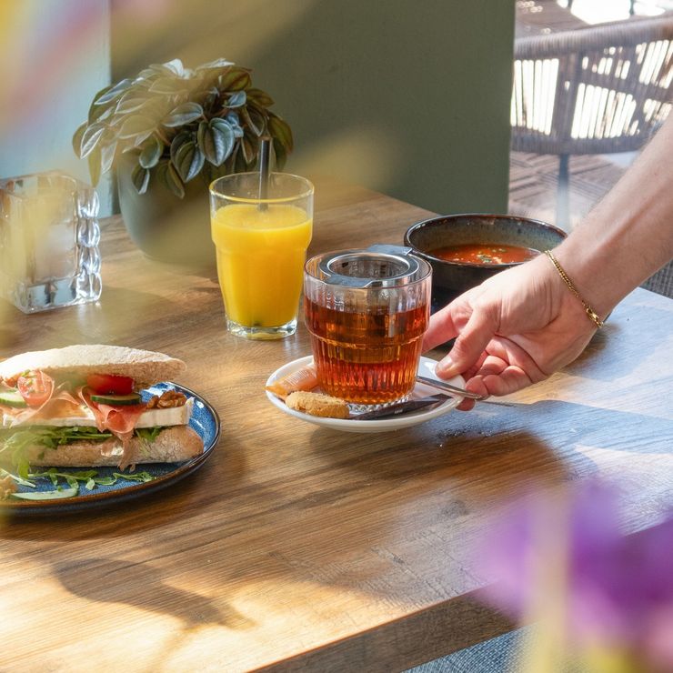 De keuken serveert een brede selectie aan vers bereide gerechten, waaronder belegde broodjes, frisse salades, poké bowls en warme wokgerechten. Comfort food en seizoensgerechten zorgen voor extra variatie. Alles wordt met aandacht klaargemaakt in de open keuken. Ook afhalen is mogelijk.