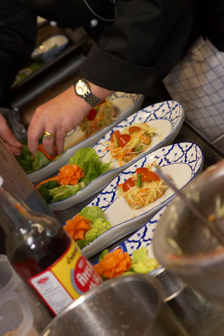 De gerechten bij Narai Thai zijn geïnspireerd op de verschillende regio’s van Thailand en worden bereid met verse kruiden zoals citroengras, koriander, gember en limoenblad. Op de kaart staan onder andere kruidige curries, wokgerechten met basilicum en chili, vis- en vleesbereidingen en vegetarische opties, aangevuld met verfijnde suggesties.