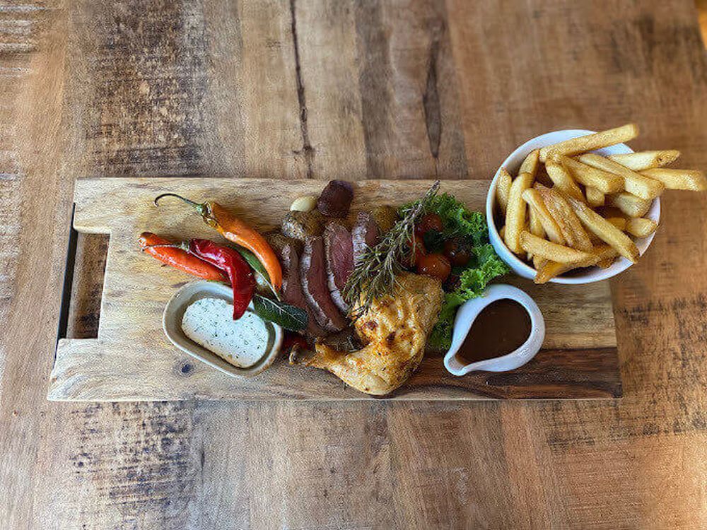 De keuken van Bisou werkt met dagverse en lokale ingrediënten die meebewegen met het seizoen. De lunchkaart biedt huisgemaakte soepen, frisse salades en goed gevulde broodjes. ’s Avonds staan er vertrouwde klassiekers op het menu, aangevuld met visgerechten, vegetarische creaties en verrassende specials.